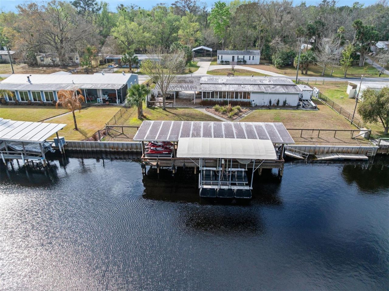 Welcome to the ASTORLIFE! If you're dreaming of small-town WATERFRONT RIVER LIVING, you've found your Fishermans Paradise right here! Imagine boating and fishing from your own backyard and your neighborhood being golf cart friendly!! You can even drive to your local River restaurants by boat or golf cart. This property offers 120 feet of gorgeous CANAL waterfront property complete with a beautiful newer seawall, Dock, two covered boat lifts plus dual jet ski lifts. Home also offers ample space for guests, featuring four bedrooms and two bathrooms, plus a bonus bedroom or office. Recent upgrades include a kitchen remodeled in 2018, updated electrical systems, a 2018 mini-split, and a newer HVAC system. Location wise this home is a national treasure, nestled on one of the widest, deepest, and most beautiful canals in Astor. It features a stunning Florida room that is fully climate-controlled, allowing you to relax and enjoy the sunshine and dreamy views with your morning coffee. Outside, you can enjoy a private oasis complete with a hot tub to provide the lifestyle you deserve. Property size is a third of an acre and is fully fenced, featuring a double carport with plenty of room for recreation and toys. It also includes an RV hookup and dump station, as well as a paved patio area perfect for entertaining. For added convenience, a public boat launch is located just around the corner.All information should be verified by buyer and buyers agent